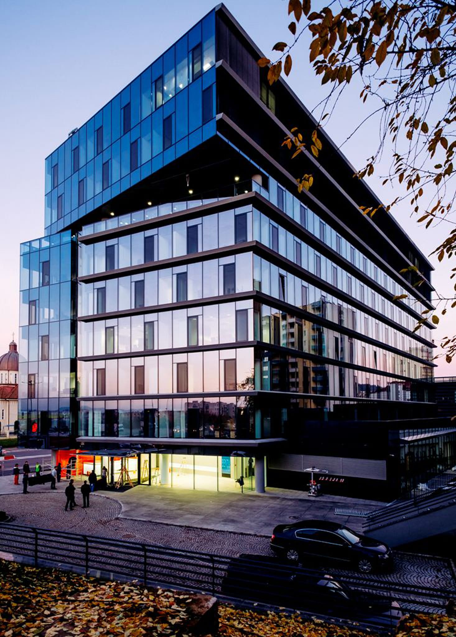 • 7.000m² pereți cortină Schüco, sticlă Saint-Gobain