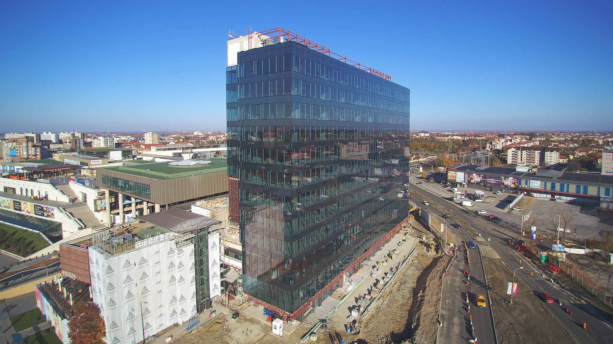 • 300m² pereți cortină Schüco, sticlă Guardian